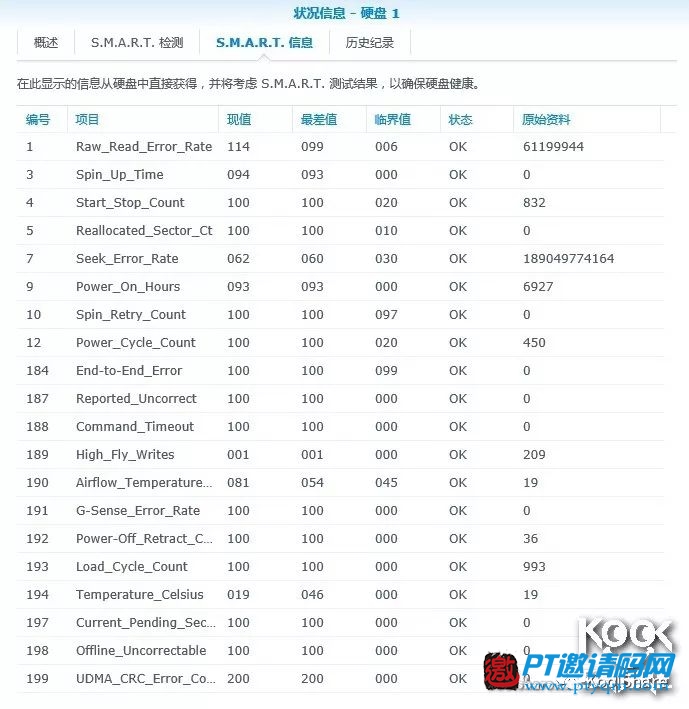 HDD的S.M.A.R.T.信息。